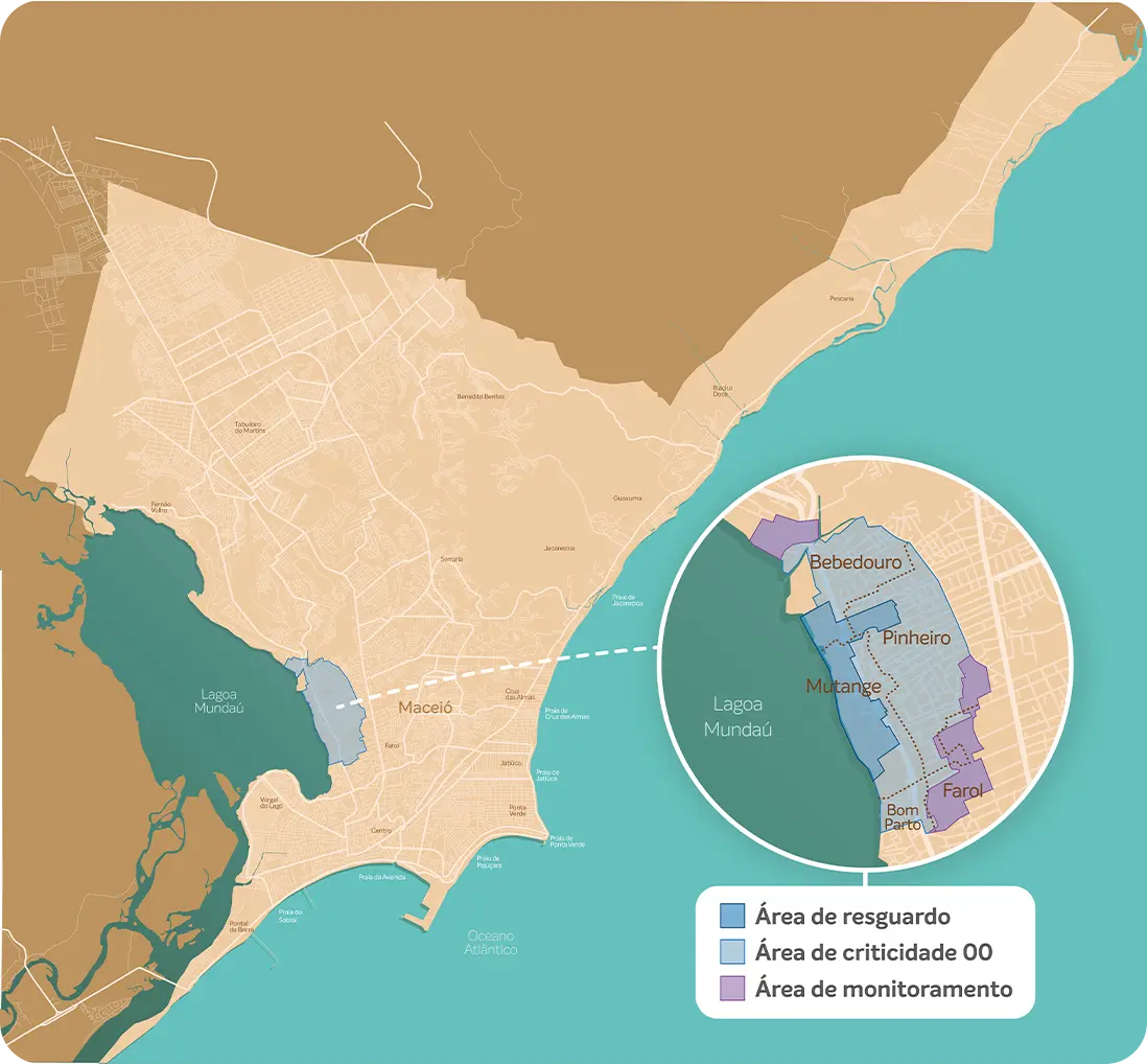 A essa área de resguardo, com um total de cerca de 550 imóveis, foram somadas áreas de desocupação definidas a partir do Mapa de Linhas e Ações Prioritárias da Defesa Civil e suas atualizações, abrangendo trechos dos bairros do Mutange, Pinheiro, Bebedouro, Bom Parto e Farol.