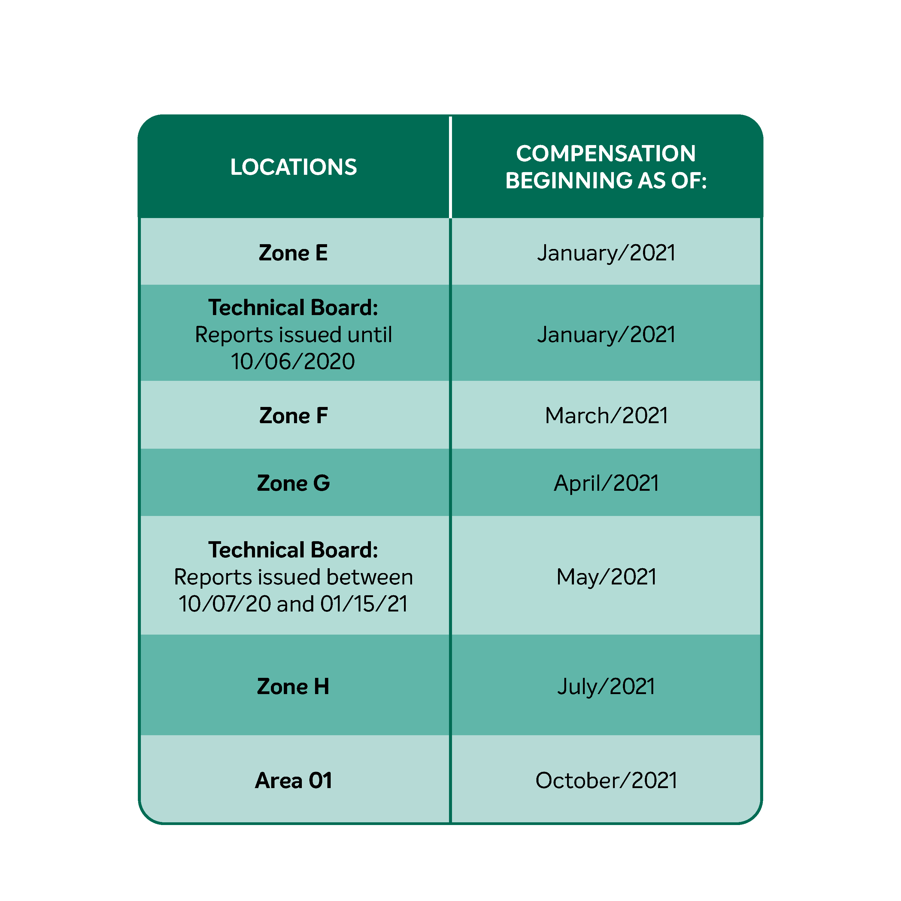 De datum waarop elke zone aan de regeling wordt toegevoegd volgt de onderstaande planning, zoals afgesproken met de instanties: