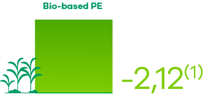(1) LCA Study conducted by ACV Brasil/2023 (from cradle to Braskem factory gate);